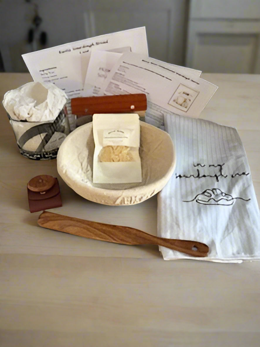Join the delicious world of sourdough with our Dehydrated Sourdough MEGA Starter Pack! Included is 20g of Betsy Riser starter, a renowned and robust starter used in all our products. Also enjoy rehydrating and feeding instructions, as well as a recipe for our famous Rustic Sourdough Loaf, a Mason Jar, Jar Cover, Spurtle, Oval Banneton Basket, Sourdough Hand Towel, bread lame with extra blades and pastry scraper. Begin your sourdough journey now!