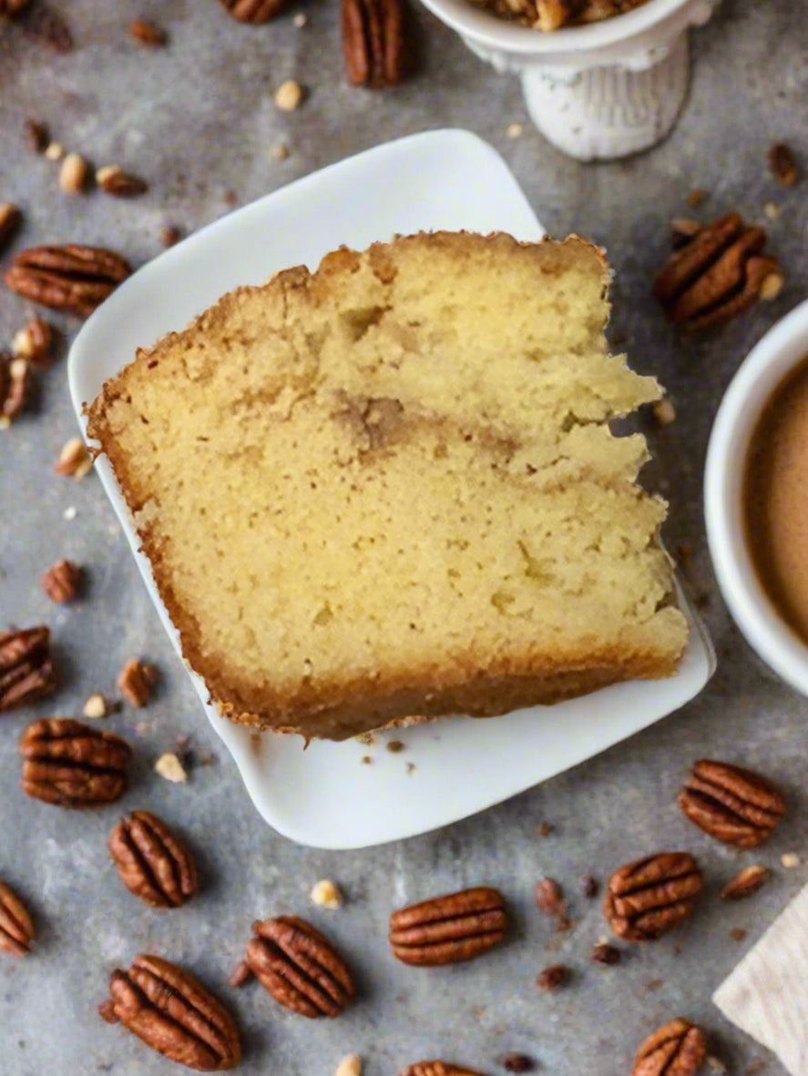 This scrumptious sourdough coffee cake has a perfectly soft, tender texture that is enhanced by a delicious ribbon of crunchy cinnamon streusel throughout the middle and on top. The addition of pecans provides a wonderful nutty flavor while the sourdough adds a tangy twist. This breakfast treat is sure to make any morning cozy and enjoyable with its soft crumb and sweet filling.